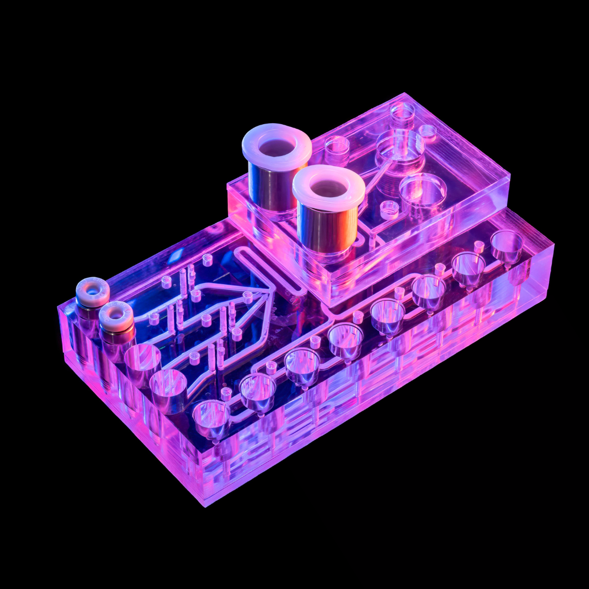 The microstructured devices can be realized by an injection molding partner, or by in-house CNC micro-machining